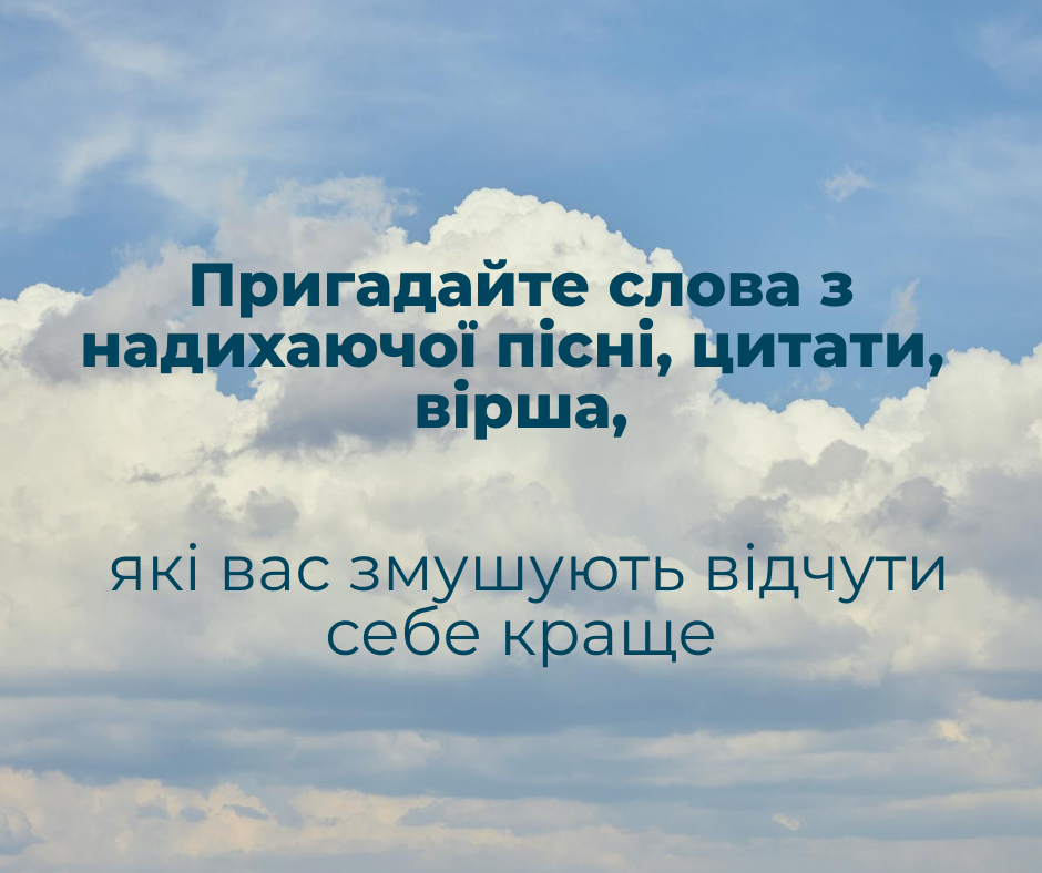 Створіть аудіо-запис повідомлення, яке ви можете програвати у разі потреби. Попросіть вашого психолога чи консультанта, або когось близького записати для вас таке повідомлення, якщо ви хочете почути в записі інший голос.